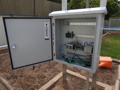 The Main equipment shelter was originally designed for electric gate control. The box has been bolted to two (2) 50mm x 50mm x 1800mm fence posts using 12mm bolts. The posts are being being set into the ground to a depth of 400mm and the base reinforced with concrete. Once concrete is poured in, it will be about a week before the concrete reaches its maximum strength, although this not considered to be critical, since there should be minimal issues with wind resistance as it is mounted near the corner of two tall fences with trees and structures on the other side of the fences.